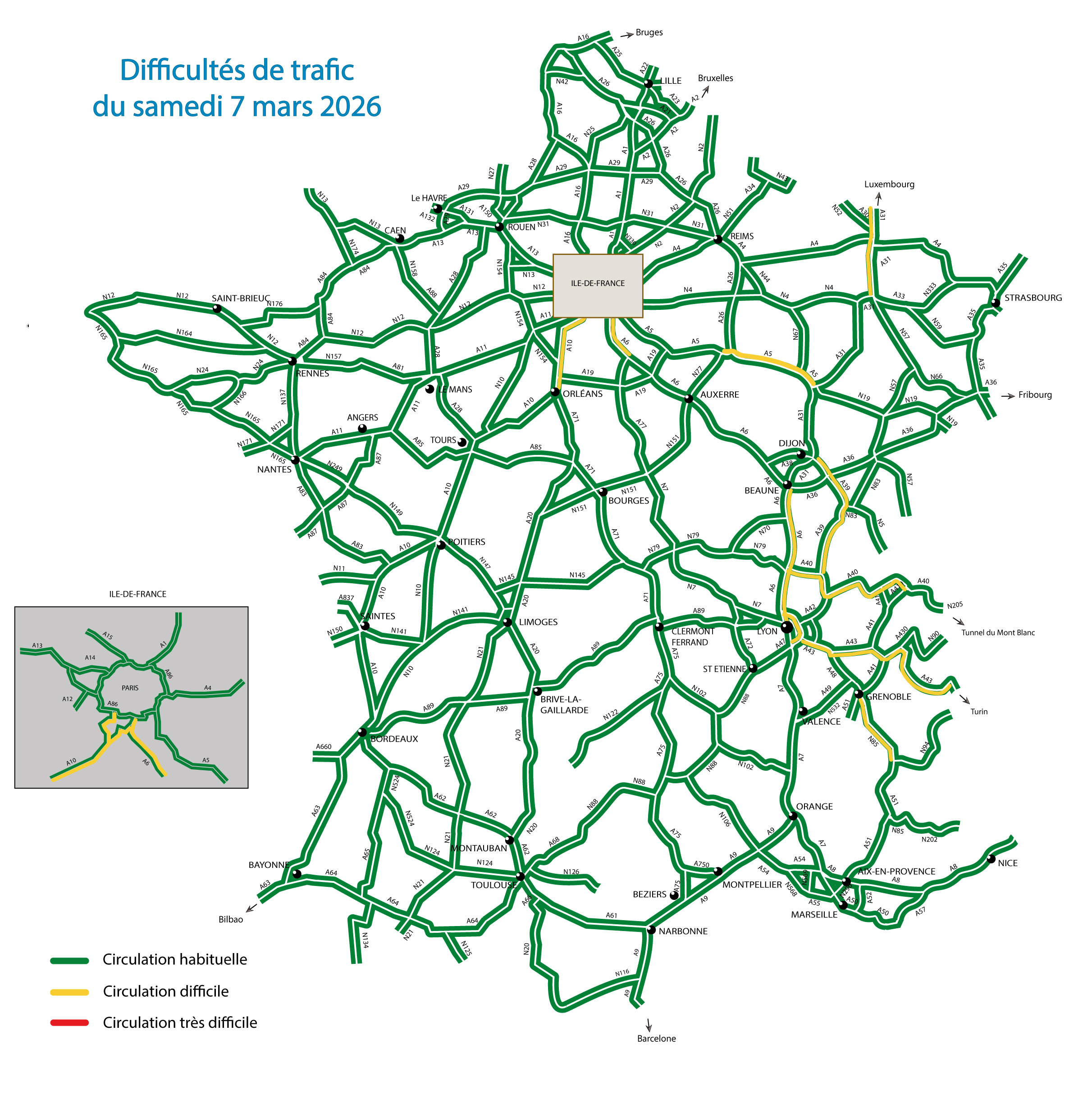 - évitez l’autoroute A6, entre Lyon et Beaune, de 9h à 19h.